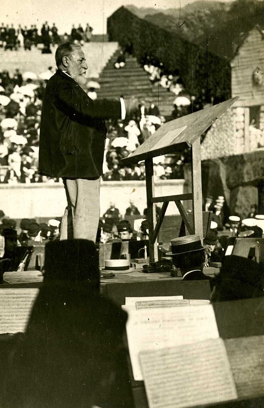 L’année 1891 marque le début d’une épopée artistique sans précédent sous l’impulsion du mécène visionnaire Fernand Castelbon de Beauxhostes. Après avoir découvert l’acoustique miraculeuse des arènes de Valencia en 1896 devant plus de 18 000 personnes, la Lyre convainc le célèbre compositeur Camille Saint-Saëns de la viabilité des Arènes de Béziers lors d’une démonstration nocturne audacieuse, sous une pluie battante. Séduit, le maître déclare :